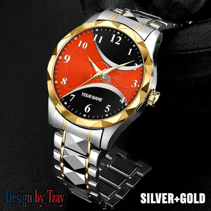 Stocktee Cleveland Browns Personalized Name Limited Edition Luxury Hand Watch With Box