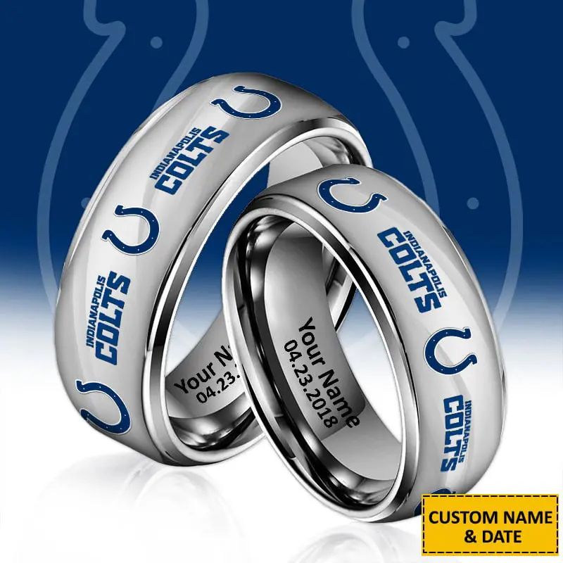 Stocktee Indianapolis Colts Engraved Custom Name Limited Edition Stainless Steel Color Printed Ring With Luxury Box