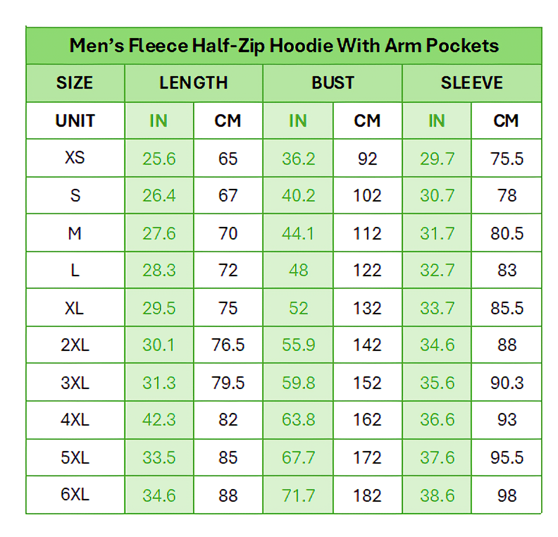 Stay warm and comfortable with this modern half-zip hoodie, thoughtfully designed for everyday wear and easy customization. Crafted from a soft yet durable fabric with a lightly brushed fleece lining, it delivers cozy warmth without feeling bulky. The half-zip front offers versatile layering options, while the functional sleeve pockets add a clean, utility-inspired touch for a modern look. Finished with a regular fit that flatters a wide range of body types, this hoodie is perfect for casual wear in cool to mild weather. Made on demand with no minimum order quantity, it also offers flexible shipping options to suit your location, an ideal balance of comfort, function, and contemporary style.