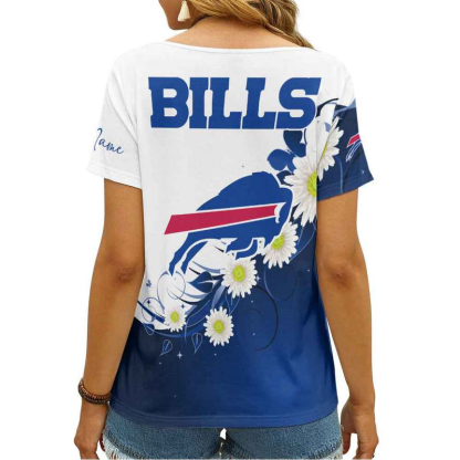 Stocktee Buffalo Bills Daisy Pattern Personalized Women V Neck T-Shirt NEW141213