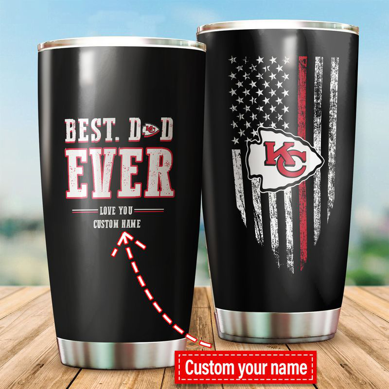 Stocktee Kansas City Chiefs Best Dad Ever Custom Name Tumbler Cup 20oz - 30oz Best Gift For Father's Day NEW072010