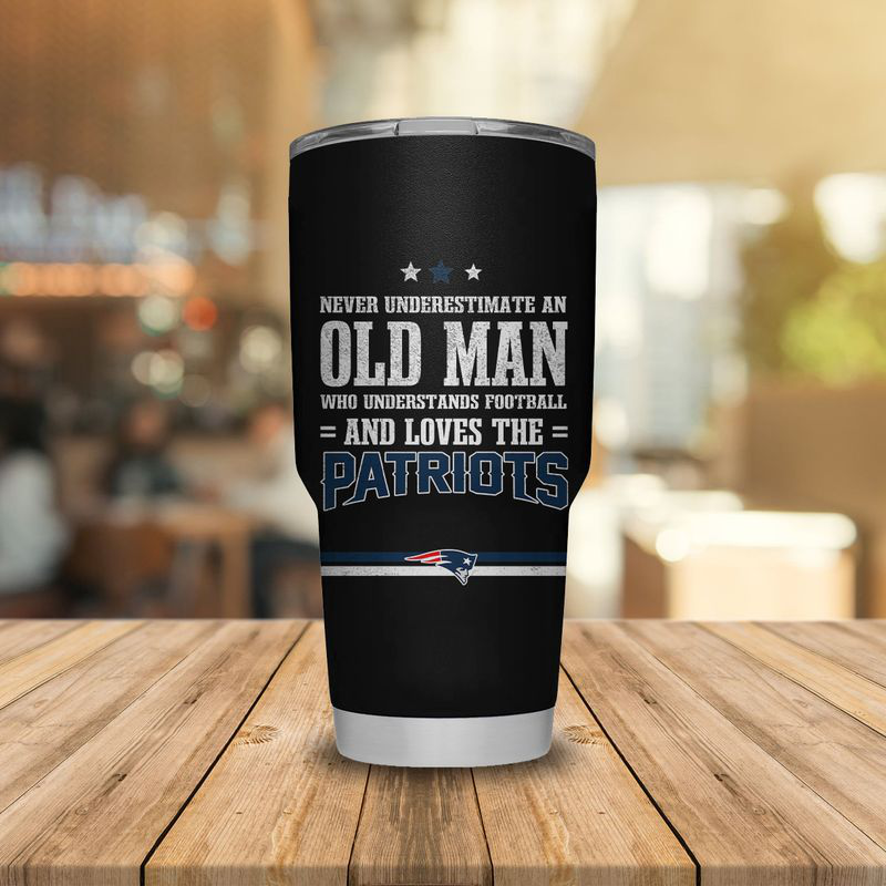 Stocktee Never Underestimate An Old Man Who Loves The New England Patriots Tumbler Cup 20oz - 30oz Best Gift For Father's Day NEW072305